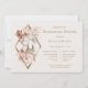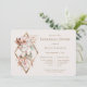 Rehearsal dinner invitation featuring bride and groom llamas adorned in Cream, brown, gold, and pastel pink florals.