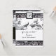 WEDDING LOVE BIRDS MONOGRAM, Black Silver Metallic Invitation