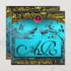 WEDDING LOVE BIRDS MONOGRAM black yellow turquoise Announcement