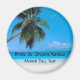 Tropical beach scene with space for names of the bride and groom and a place for you to customise with the date of the wedding.