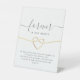 Honour your loved ones with our elegant white memorial table pedestal sign. Featuring a minimalist design with a faux gold rope heart and modern calligraphy script that reads 'Forever in our hearts,' this sign is a timeless tribute to those who are dearly missed. Let their memory shine brightly at your wedding, reminding all that they are always cherished.