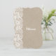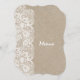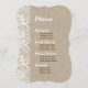Elegant wedding menu design with beige linen background with white floral lace Wedding menu template. If you don't see this design on a product you are looking for, just email me.