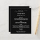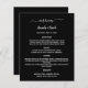 A classic wedding menu. A black background. White text. Personalise and add your name, date and the menu.