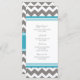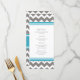 Elegant wedding dinner menu in elegant teal blue, grey and white chevron zigzags retro pattern, customisable with your dinner details, available in a wide range of matching wedding products.