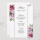 This wedding menu card is shown on basic paper in a lovely floral print. Script and standard text in a Black colour.