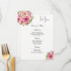 This Menu Card template is shown on basic paper in white with a lovely floral print. Script and standard text in black.