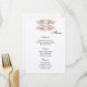 This wedding menu card is shown on the ecru embossed paper in a lovely blush pink and ivory roses print. Script and standard text in a Black colour.