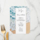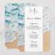 This Menu Card template is shown in the basic matte paper with a lovely beach photo print with script and standard text in black.