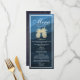 Wedding Menu Rack Cards Templates - Elegant Faux Gold Foil Pineapple Couple on on Navy Blue Wave Pattern Background.