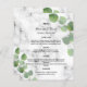 Personalise and add your names, date and the wedding menu. Marble stone print as background, decorated with eucalyptus greenery, sprigs.