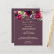 An elegant bohemian boho style wedding menu card. Lush watercolored roses, in pink and burgundy. Templates for your names, date and the wedding menu. Cassis background on front, cassis, deep purple on back. Golden coloured letters.