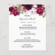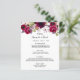 An elegant bohemian boho style wedding menu card. Lush watercolored roses, in pink and burgundy. Templates for your names, date and the wedding menu. White background on front, cassis, deep purple on back. Black coloured letters.