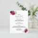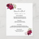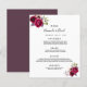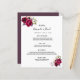 An elegant bohemian boho style wedding menu card. Lush watercolored roses, in pink and burgundy. Templates for your names, date and the wedding menu. White background on front, cassis, deep purple on back. Black coloured letters.