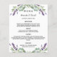 An elegant, glamourous wedding menu card. Personalise and add your names, date and the wedding menu. Decorated with lavender florals, flowers and eucalyptus greenery.