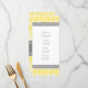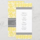 Elegant wedding dinner menu in stylish bright canary yellow, grey and white classic floral damask vintage pattern, customisable with your dinner details, available in a wide range of matching wedding products.