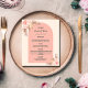 An elegant bohemian boho style wedding menu card. Personalise and add your names, date and the wedding menu. Decorated with blush pink florals and pampas grass.