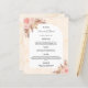 An elegant bohemian boho style wedding menu card. Personalise and add your names, date and the wedding menu. Golden marble print as background. Decorated with blush pink florals and pampas grass.