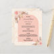 An elegant bohemian boho style wedding menu card. Personalise and add your names, date and the wedding menu. Golden marble print as background. Decorated with blush pink florals and pampas grass.
