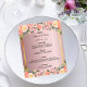 An elegant bohemian boho style wedding menu card. Pink lush watercolored roses as decor. Templates for your names, date and the wedding menu. A faux gold frame and a chic dusty rose faux metallic background colour. Black coloured letters.