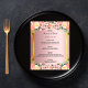 An elegant bohemian boho style wedding menu. Pink lush watercolored roses as decor. Templates for your names, date and the wedding menu. A faux gold frame and a chic dusty rose faux metallic background colour. Black coloured letters.