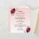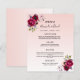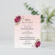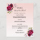 An elegant, modern and romantic wedding menu card. Rose gold, blush pink gradient background, decorated with watercolored flowers in burgundy and rose gold. Templates for your names, date and the wedding menu. Black coloured letters. Back: Rose gold gradient background.