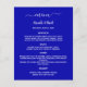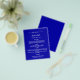 A classic wedding menu. A royal blue background. White text. Personalise and add your name, date and the menu.