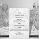 An elegant, glamourous wedding menu card. Personalise and add your names, date and the wedding menu. Faux silver metallic looking background, decorated with faux glitter dust.