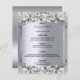 An elegant and glamourous wedding menu card. Black and white watercolored roses as decor. Templates for your names, date and the wedding menu. A faux silver frame and a faux silver metallic looking background colour. Black coloured letters.