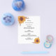 An elegant bohemian boho style wedding menu card. Personalise and add your names, date and the wedding menu. A white background. Decorated with muted coloured sunflowers and pampas grass.