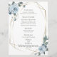 Watercolor Wedding Menu | Boho dusty blue watercolor roses surround a geometric terrarium style gold frame with sage greenery. Reverse is a complimentary dusty blue. Customise text, font style, colour and size. Original artwork created for the BarefootBride™ by © WhimsicalArtwork™ - This is part of a complete Wedding Stationery Suite with matching wedding, baby shower and other event stationery.