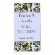 Elegant wedding wine labels ready for you to personalise with your own information. Lovely light blue and deep olive green damask design, on the top and bottom of the label with the text area in solid light green, and silver tone ribbons on the text borders. Great for your home made wines or mini champagne and wine bottles. Customise if you want to change text colour or font style.