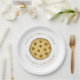 This design features a birthday cookie favour treat, wedding minimalist cute cookie, wedding minimalist cute treat, whimsical fun typography round, chocolate chip cookie dessert, wedding reception grooms dinner buffet, rehearsal dinner engagement party, elegant simple classic design, wedding party paper plate, wedding party supplies, homemade sweet treat snack baking, artwork by laura lacina