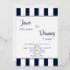 Customise this classic, updated invitation shown in signature paper, with paper choices of course, in a classic Black and White striped border on top and bottom; silver foil accents and silver foil text over white. Choice of foil colours. Change information to your own in this nicely laid out template. Great for weddings, luncheons, brunches, teas or gala type receptions or events.