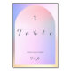 This is a modern, boho arch Wedding Table Number Card design. It is in sherbet pastels, pink, lilac, blue and yellow ombre /gradient colours and elegant typography /script. The card is double-sided, with the same text on both the front and back, to make it easier for your guests to find their table. The text has the number "1", the word "Table" and space for you to add your wedding date and initials. This minimal and modern design, is perfect for your wedding day decorations and tableware, and ideal to let your family and friends know where their table is. To personalise, simply type in the table number, your wedding date and your initials into the personalise this text box. Here you can also make changes to the rest of the text, if you want to. To change the colour or font, check out the design editing tool. If you need help with personalisation, or for a custom design contact me via zazzle chat or email: ursuladawnmoon@gmail.com