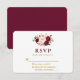 Wedding Modern Elegant Burgundy Floral Gold RSVP Card