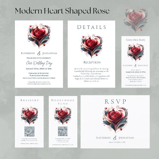 Elevate your wedding with this Modern Wedding Invitation featuring a Modern Heart Shaped Rose. This contemporary design exudes sophistication and sets the tone for a stylish celebration. Capture the essence of your love with this luxurious and memorable announcement. Order now to infuse your wedding with modern charm and timeless elegance. Celebrate the richness of your love story in every detail with this Modern Wedding Collection.