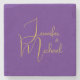 Wedding Modern Minimalist Plain Calligraphy Name Stone Coaster