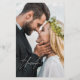 Budget Wedding Handwritten Thank You Cards that have a photo on the front and back. The Thank you cards contain a modern white and Black hand lettered cursive script typography that are elegant, simple and modern to use after you minimalist simple wedding day celebration.
