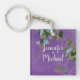Wedding Modern Plain Calligraphy Name Floral Key Ring