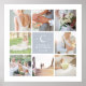 Create a sweet wedding keepsake for your desk or home with this frameable photo collage print featuring 8 square photos arranged around a light neutral grey square bearing your initial, names and wedding date.
