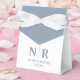 Our Wedding Monogram Bride And Groom Initials Elegant Napkins, the perfect blend of minimalist sophistication and classic charm for your Dusty Blue and white wedding.