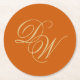 Wedding Monogram Burnt Orange 2 Initials Script Round Paper Coaster