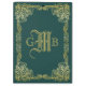 Ornate, classical frame in gold tones with dark green background. Replace the sample monogram with your own for a personalized gift. Makes a wonderful gift for anyone who enjoys classic, timeless, traditional designs. The background color is changeable: Simple click on the “Customize” button and pick a hue from the “Select a background color” panel. (IMPORTANT NOTE: This product is not made of real gold. Graphic design software was used to simulate the look of metal. The image is printed on a flat surface.)