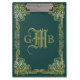 Wedding Monogram Classic Gold Frame Dark Green Clipboard