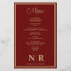 Perfect for engagement parties, rehearsal dinners, or wedding receptions, our Dark Red and Gold Wedding Monogram Customised Rehearsal Dinner Menu adds a touch of opulence to any event. Make every moment memorable with a menu that reflects your impeccable taste and style.