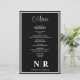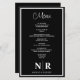 Dine in style with our Black and White Wedding Monogram Customised Rehearsal Dinner Menu, the perfect blend of elegance and personalisation for your special event. Crafted with meticulous attention to detail, these custom menus add a touch of sophistication to your rehearsal dinner, engagement party, or wedding reception.