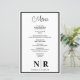 Each menu is meticulously crafted with a classic white backdrop, adorned with a sleek black wedding monogram that adds a touch of timeless elegance. Personalised with your names and event details, this menu becomes a cherished keepsake of your special day, setting the tone for an unforgettable celebration.
