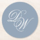 Wedding Monogram Dusty Blue Elegant Script Simple Round Paper Coaster