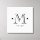 Custom add your own monogram, initial, family name and wedding anniversary or birthday date modern black and white elegant, simple, trendy chic wedding couple gallery wrap canvas.