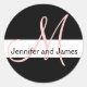 Wedding Monogram Initial Names Pink White Black Classic Round Sticker